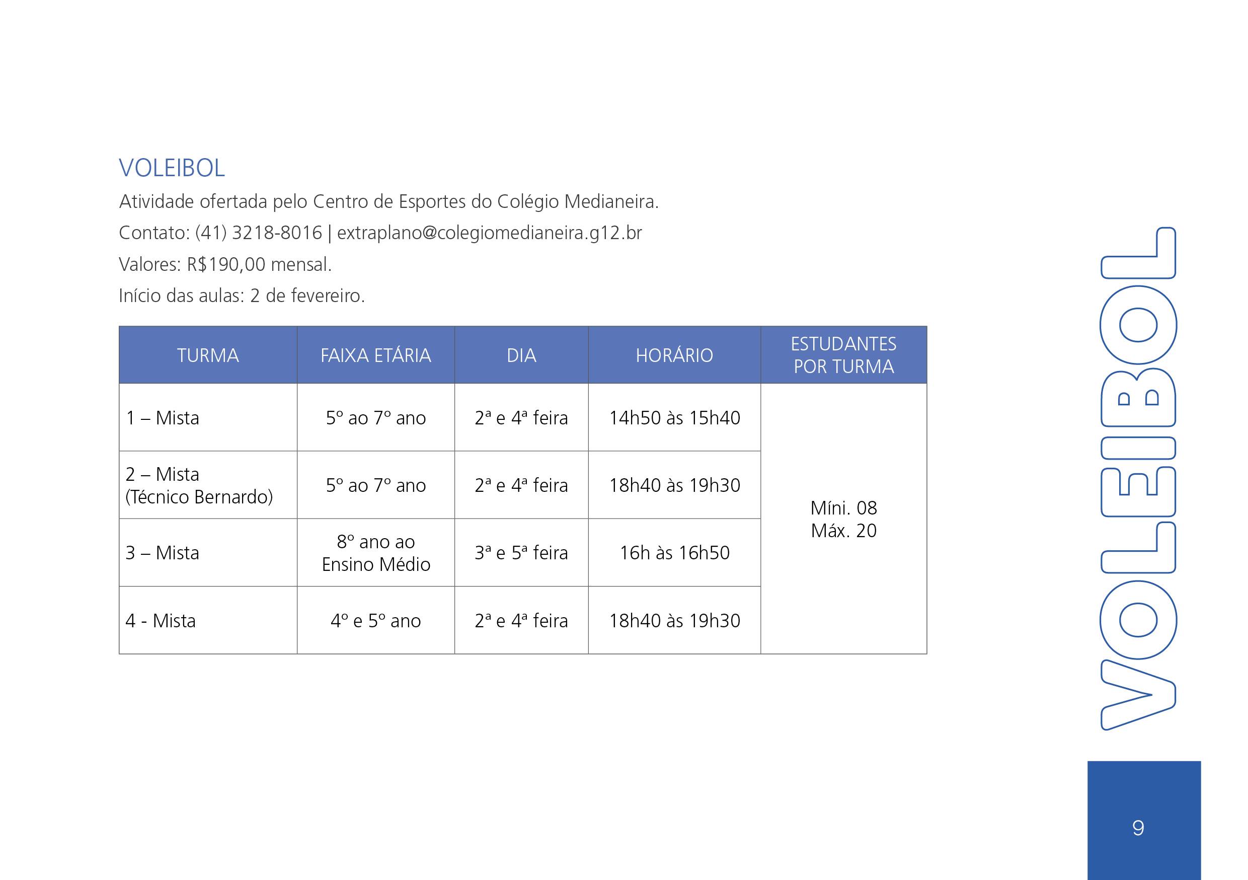 – Atividades ofertadas pelo Centro de Esportes do Colégio Medianeira.